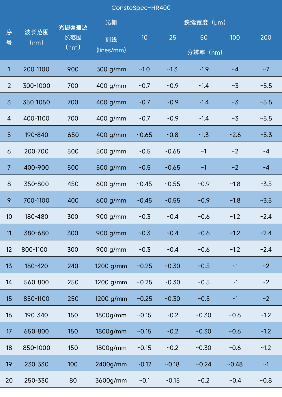 光谱范围全面覆盖:HR400 (200-1100nm) / NIR400 (900-1700nm) / Mini400(高稳定)