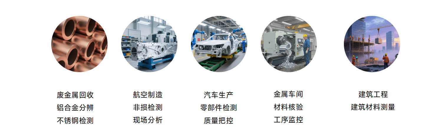 设备专用于合金和金属检测,覆盖多种合金类型,包括不锈钢、低合金钢、钛合金和铝合金,能够精准检测多种轻元素和重元素。凭借抗氧化层专利算法及“一枪搞定”的便捷优势,设备在多种场景中表现出色:为废品回收和金属制造实现快速穿透氧化膜分辨牌号;为航空制造带涂层构件提供精准检测;为汽车生产线实现零拆解部件分析;提升金属车间的原料检验效率,为各行业提供可靠的数据支持。