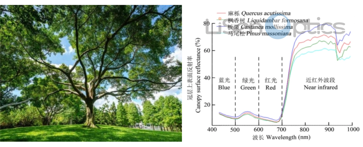 通过不同植物在各波段的光谱特征,可以帮助区分森林中的不同树种、植被类型。尤其是在多样性丰富的森林区域,光谱仪的高光谱分辨率可以识别不同物种的光谱“指纹”,从而提高植被分类的精度。地物光谱仪对树冠进行详细的光谱测量。通过分析光谱数据,精确获取森林树种信息及其空间分布信息对于理解森林生态系统的结构、功能及其演替,以及生物多样性的研究具有重要意义。
